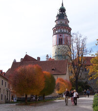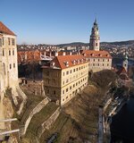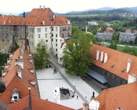 Komplex českokrumlovského hradu a zámku vznikl postupně v jednotlivých stavebních etapách od 14. do 19. století. Základy dnešní dispozice zámku byly vytvořeny již v průběhu velkolepé renesanční stavební úpravy zámku v 16. století. Celý areál hradu a zámku je průchozí, veřejnosti přístupný a v sezoně, zvláště v podvečer, je nevšedním zážitkem procházka jednotlivými nádvořími. Během exteriérové prohlídky zámku lze projít přes tzv. Dolní hrad, který tvoří I. zámecké nádvoří zvané Rejdiště a II. zámecké nádvoří zvané Gardové. Cesta dále pokračuje přes III. a IV. zámecké nádvoří, která tvoří komplex Horního hradu. Přes Plášťový most se prochází na V. zámecké nádvoří a dále do rozlehlé zámecké zahrady, kde je však vstup omezen provozní dobou a divadelní produkcí Jihočeského divadla na otáčivém hledišti.