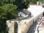 Mohutné bastiony u vstupu na II. nádvoří jsou součástí opevnění zbudovaného v roce 1620. Na počátku vojenských nepokojů třicetileté války nechal postavit opevnění velitel císařské hradní posádky Ferdinand Carrati de Carrara. Lvi jako štítonoši nesou na vrcholech bastionů štíty se znakem knížete Josefa Adama ze Schwarzenberku (1722-1782) vlevo a jeho manželky Marie Terezie z Lichtensteinu (1721-1753) vpravo.