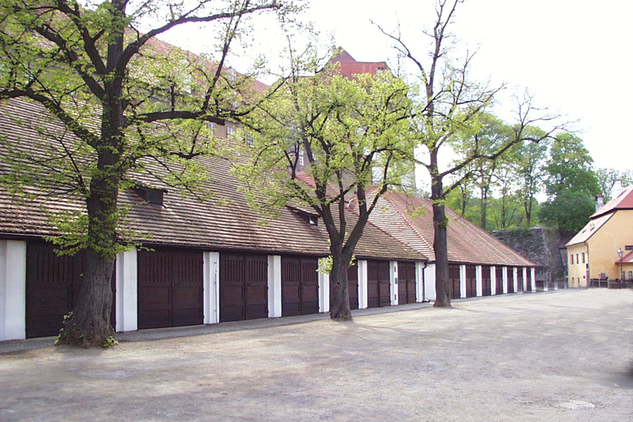 Naproti souboru hospodářských budov stojí při valech velkoryse řešené kočárovny (Zámek - Kočárovny) vybudované někdy na počátku 18. století. Provoz úřednického aparátu a frekvence knížecích návštěv si vyžadovaly značné nároky na uskladnění kočárů, saní či jiných povozů. Je zajímavé, že i po požáru v roce 1774 byly kočárovny obnoveny v původním rozsahu.
