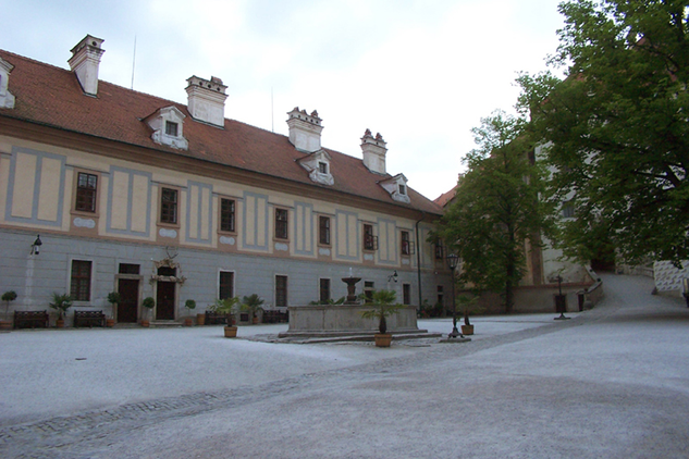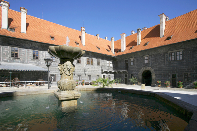 Kašna na II. nádvoří zámku Český Krumlov je datována rokem 1641 a její osazení zřejmě souviselo s úpravou terénu nádvoří.